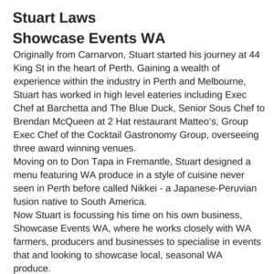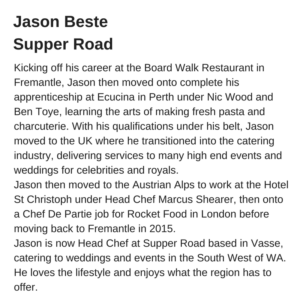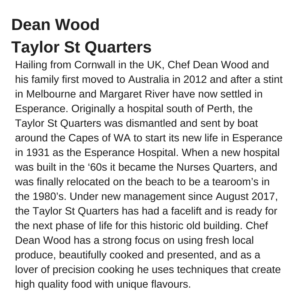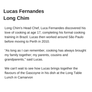 We are thrilled to introduce the amazing and talented chefs participating in this year’s Gascoyne Food Festival.