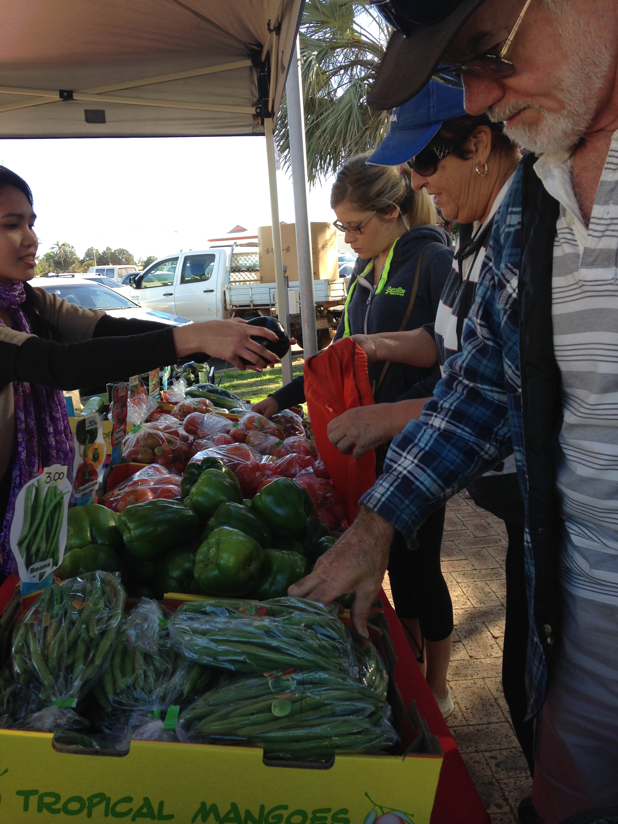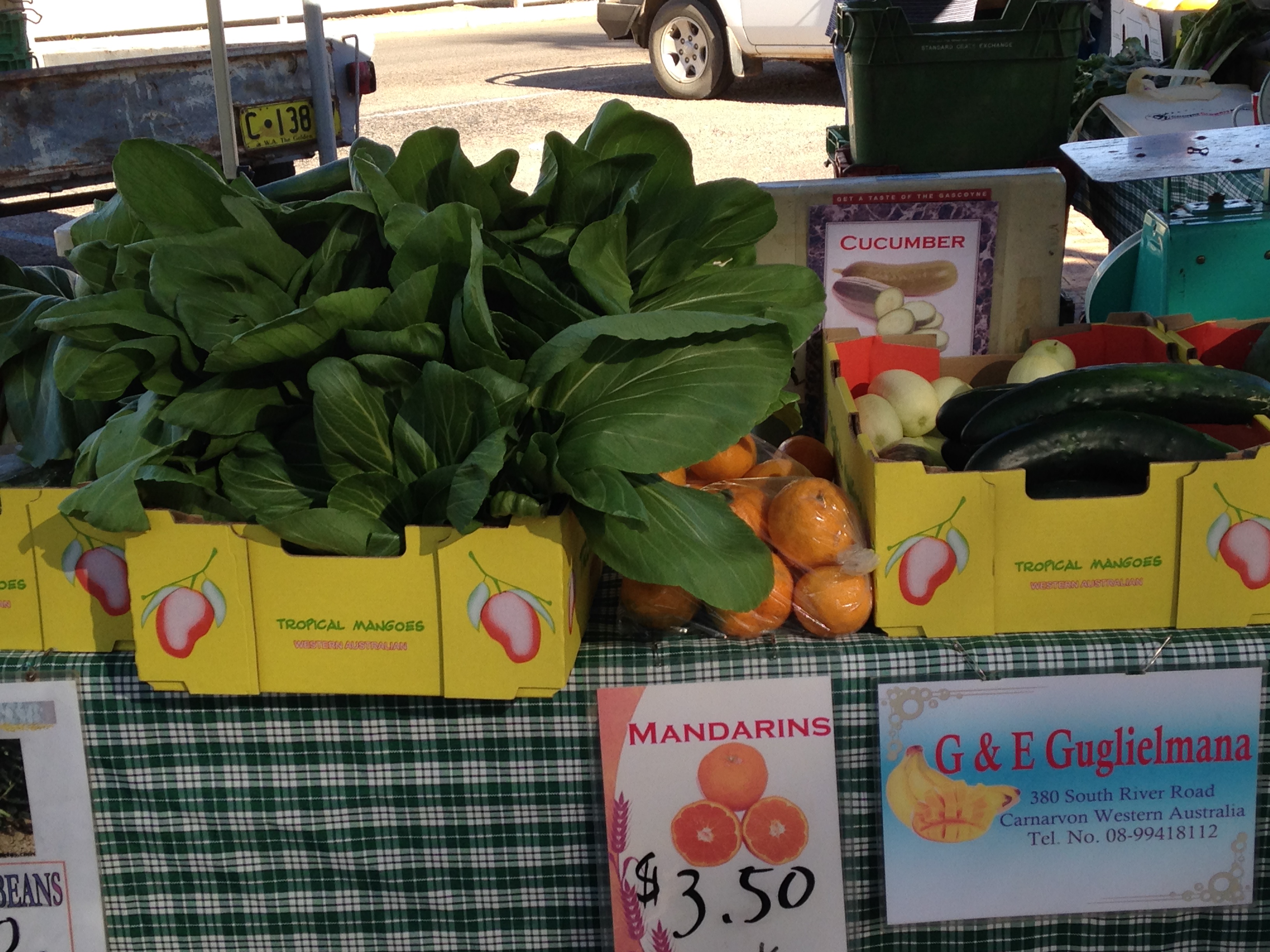 The Guglielmana’s produce a wide variety of fruit and veg throughout market season including Asian greens, beans, herbs, mandarins and silverbeet . Outside of market season, they specialise in mangoes.